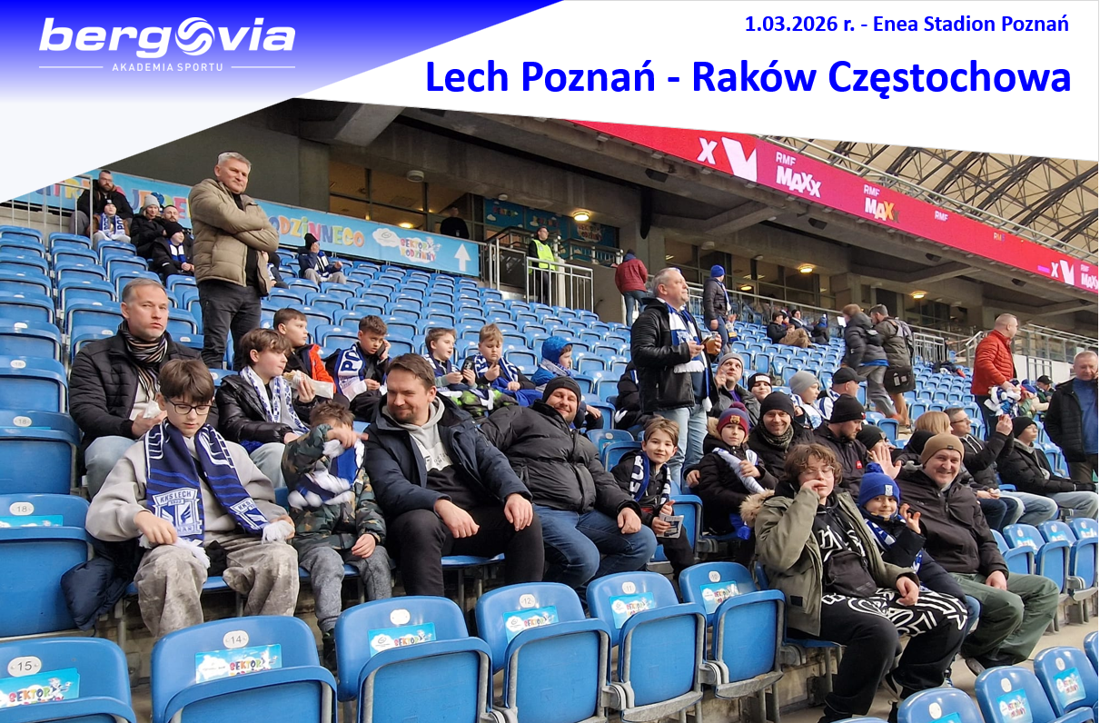 Część z naszej klubowej ekipy miała okazję przeżyć piłkarskie emocje na żywo podczas meczu Lech Poznań - Raków Częstochowa. Wspaniała oprawa kibiców na pięknym stadionie, ogrom emocji i siedem bramek po zwycięstwie gospodarzy 4:3.